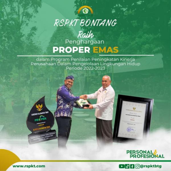 Kamis 15 Juni 2023 RSPKT Bontang meraih penghargaan Emas dalam program penilaian peningkatan kinerja perusahaan dalam pengelolaan lingkungan hidup periode 2022-2023, RSPKT Bontang telah meraih Proper Emas sebanyak 10 kali. Prestasi ini juga tidak lepas dari dukungan #SobatSehat semua. Penghargaan diterima langsung oleh dr. Rustam Effendi. MARS yang diserahkan oleh Bapak Isran Noor selaku Gubernur Kaltim di Samarinda. Terimakasih atas dukungan semua semoga RSPKT Bontang bisa mempertahankan prestasi ini dan bisa lebih baik lagi kedepannya.