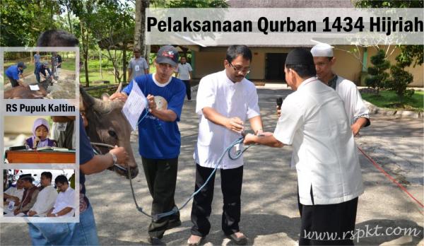Hewan Qurban langsung diserahkan oleh Direktur RS Pupuk Kaltim Bontang, dr. Nurul Fathoni M.Kes kepada Ketua Panitia Pelaksanaan Qurban RS Pupuk Kaltim. Pelaksanaan pemotongan hewan Qurban dilaksanakan setelah pelaksanaan Sholat Idul Adha dan daging kurban akan didistribusikan kepada masyarakat sekitar RS Pupuk Kaltim Bontang, yaitu: